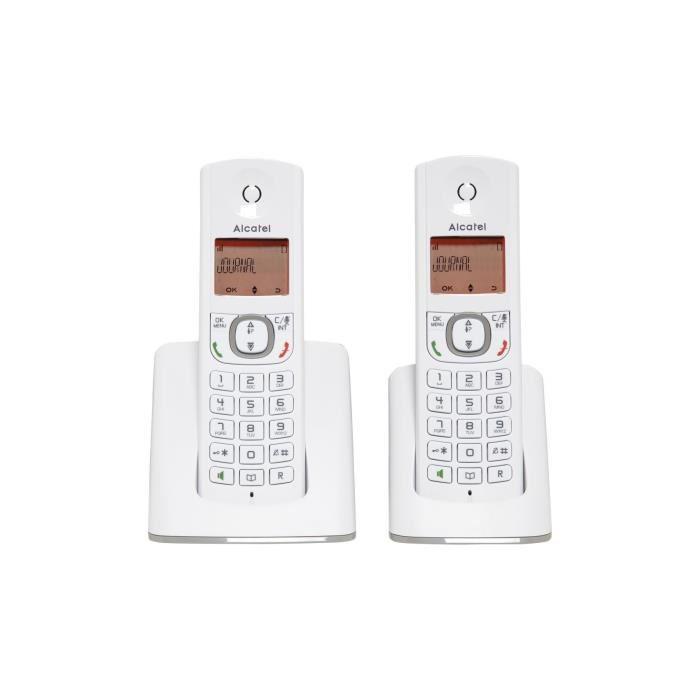 Telephone sans fil - ALCATEL - F530 Duo - 2 combines. blocage d'appels. mains libres. 2 memoires directes. Blanc-Gris