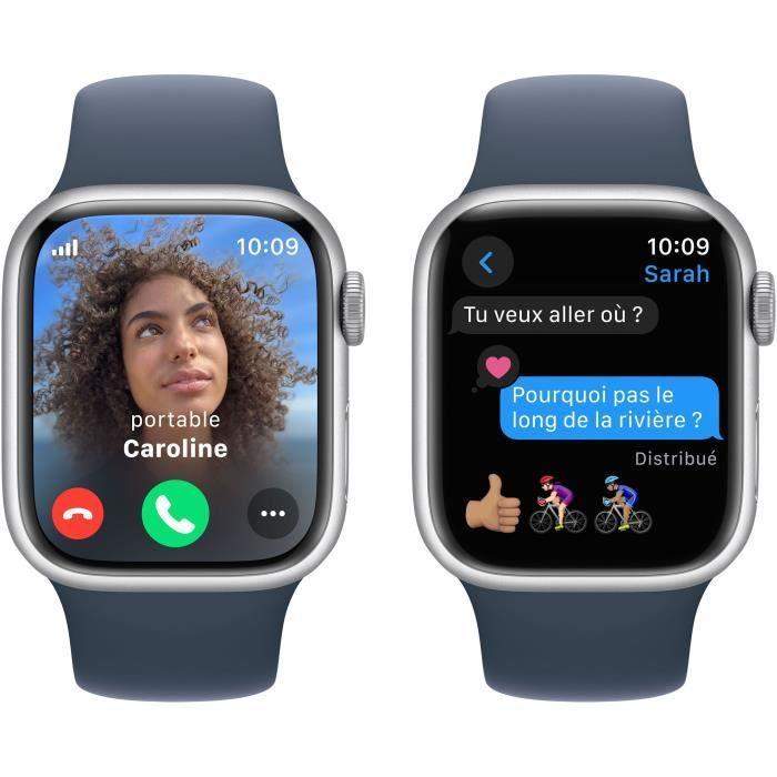 Apple Watch Series 9 GPS + Cellular - 41mm - Boitier Silver Aluminium - Bracelet Storm Blue Sport Band - S-M