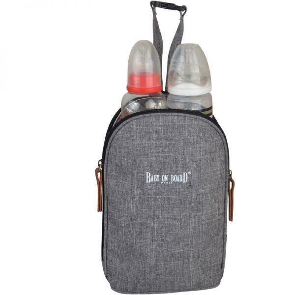 Baby on board- sac a langer - sac titou Gris chiné - 2 compattiments 8 poches - sac repas - tapis a langer sac linge sale attaches