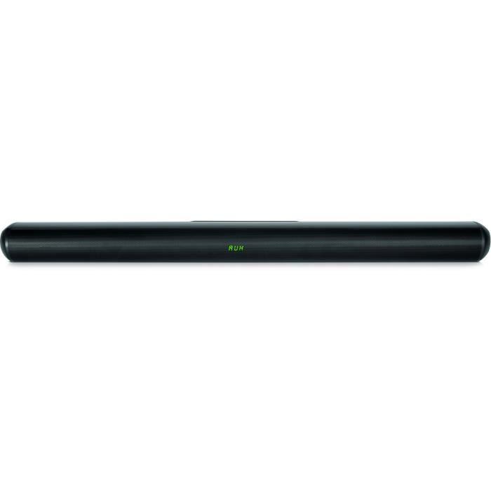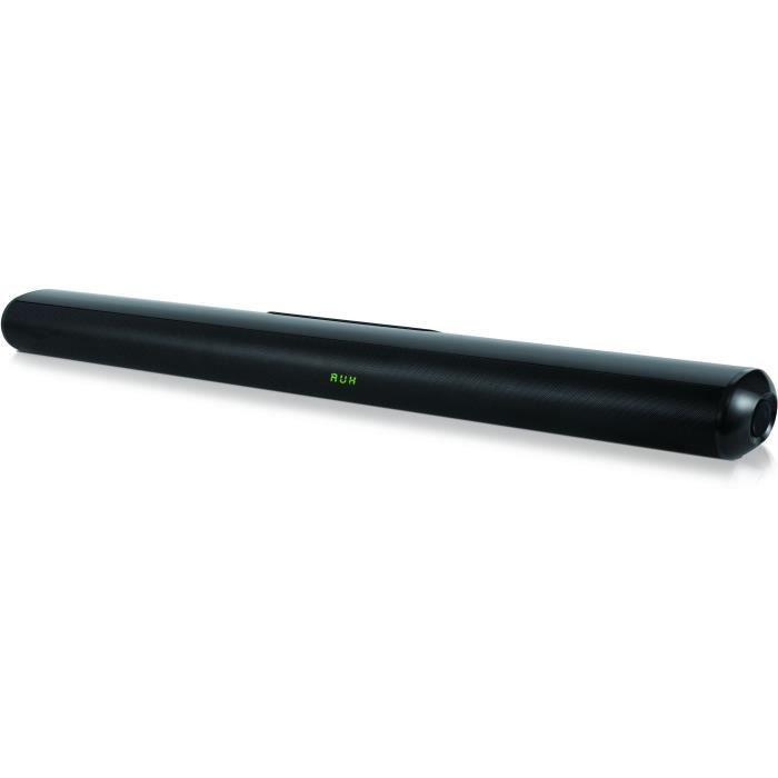 Barre de son noir bluetooth V5.0 + EDR(15m) Ecran LED 2.0CH STEREO Puissance : 40W RMS -100W MAX Fréquence en réponse 50Hz - 18KHz S/N:= 70dB DSP Haut parleur : 2''/10W high quality speaker*4 + air tube*2 Connectique : AUX - USB - HDMI (ARC) - Optique Accessoires : Télécommande, adaptateur, AUX, support mural