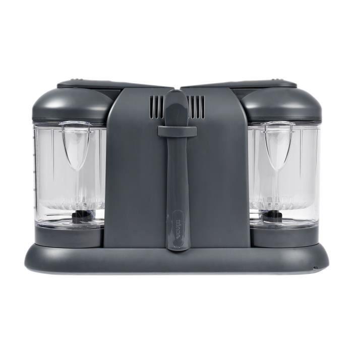 Robot 4 en 1 : cuit a la vapeur, mixe, décongele, réchauffe. Contenance XXL avec ses 2 bols de 1100 ml chacun. Idéal pour des préparations simultanément salé/sucré ou plusieurs repas a l'avance. Livré avec : spatule, couvercle de mixage et livret de recettes.