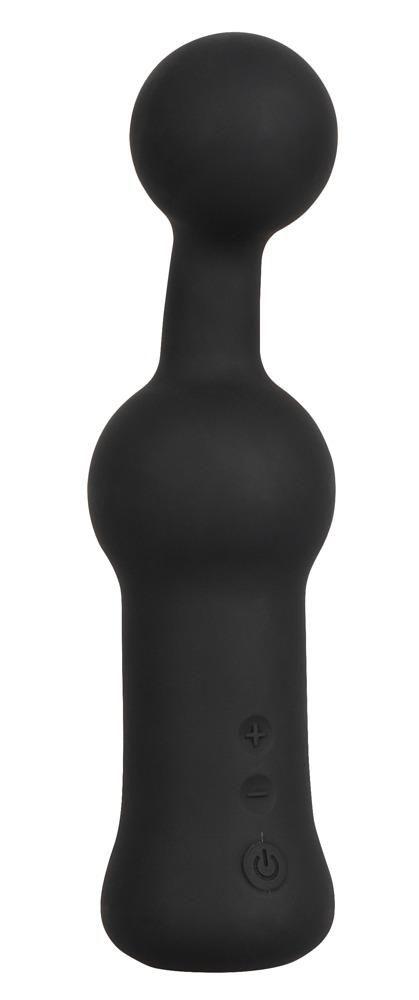 Le vibrateur de prostate aux formes merveilleuses de Black Velvets a une pointe flexible et légèrement incurvée en forme de boule et une grosse boule sur la tige qui fait plaisir à la prostate et à l'anus avec des vibrations lors d'un massage anal.