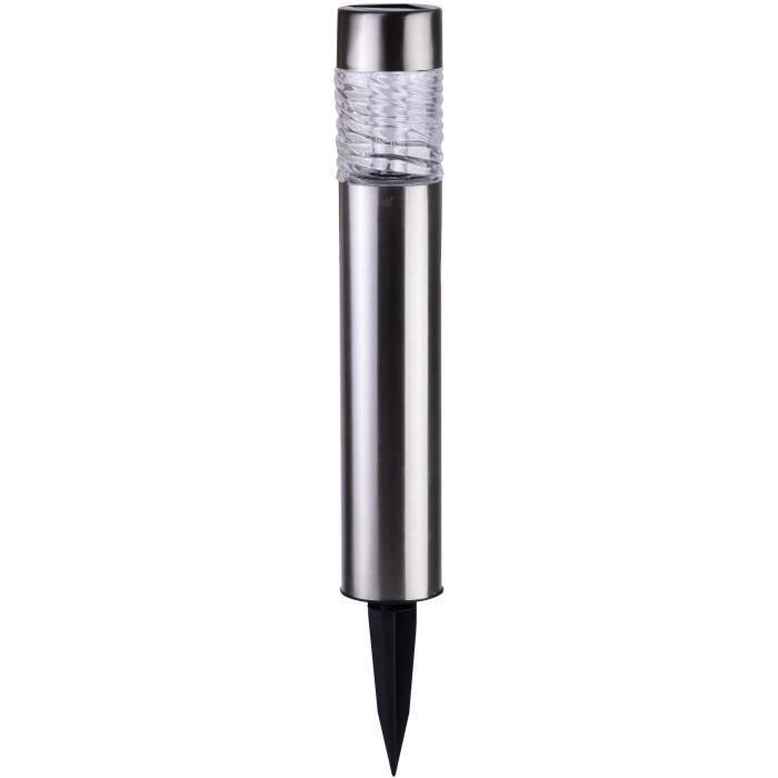 GALIX Borne a énergie solaire en inox - 0,13 w -Nombre de Lumens : 10 - Durée maximum d'éclairage : 8 heures - 1 LED blanche - 0,2W - 1 x 600mAh Ni-Mh AA