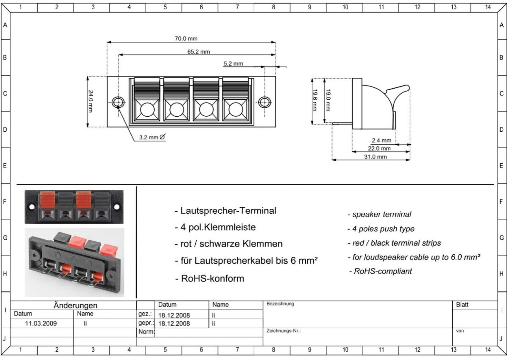 Bornier stereo compatible avec haut-parleur - 4 poles - 70x3.5mm