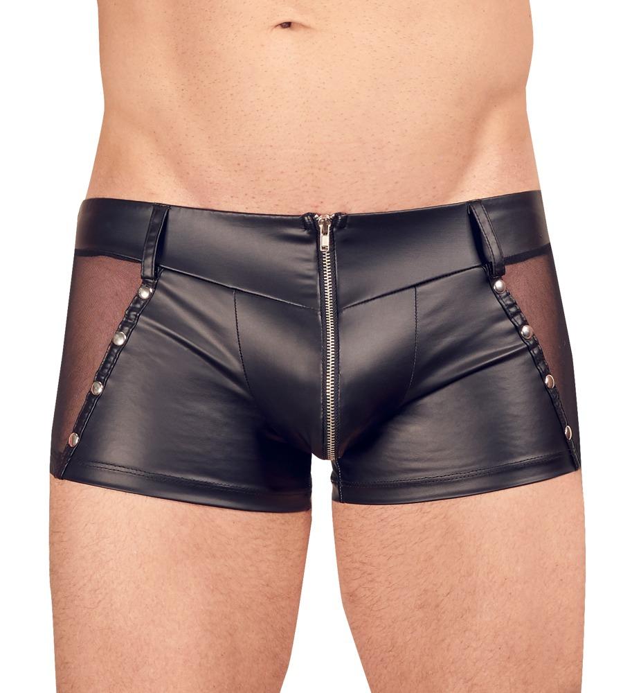 Pantalon flatteur de Svenjoyment en matière tendance d'aspect mat avec des inserts en filet transparent et des clous décoratifs de chaque côté.
