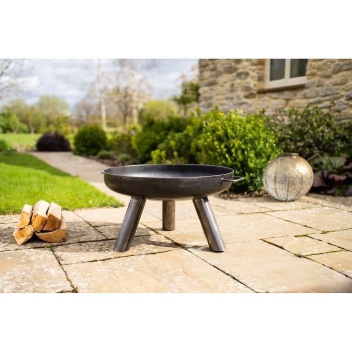 Brasero Caldera en acier - 3 pieds - Finition huile brosse - H30 x L50 x P50 cm