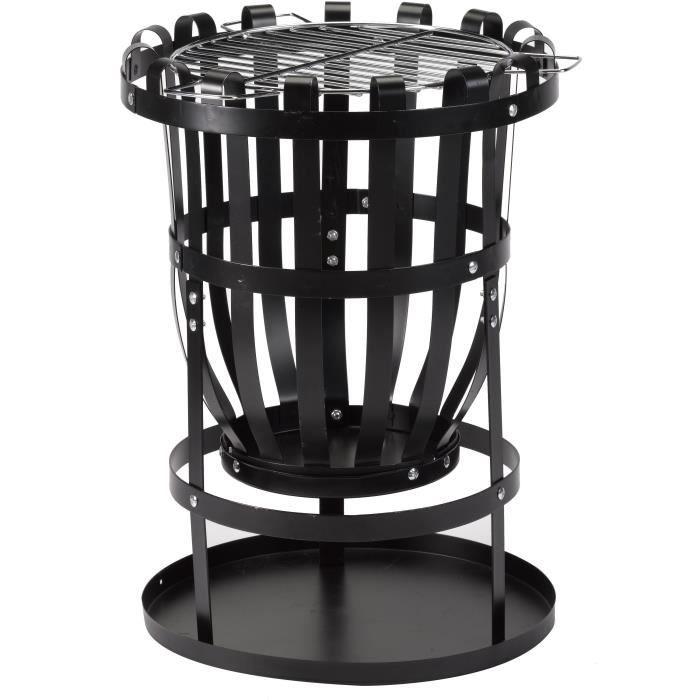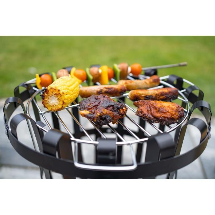 Brasero Forno Firebasket en acier - 3 pieds - Finition noire - Grille chromee