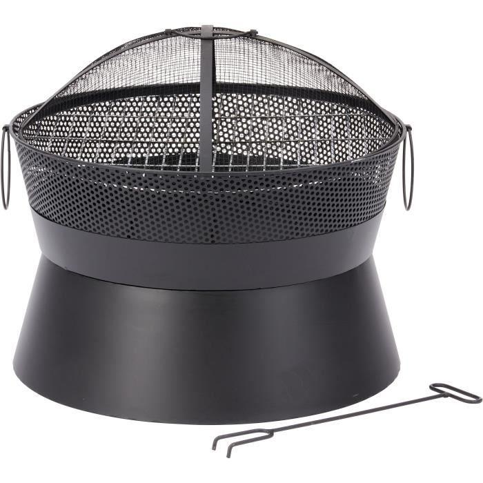 Acier enduit de poudre résistant a l'usure avec finition de peinture noire a haute température. Grille chromée pour une cuisson de style barbecue. a utiliser avec du bois non traité ou du charbon pour la cuisson Assemblage rapide. Instructions incluses. Dimensions assemblé : H42cm x L51cm x P51cm. Epaisseur 0.7mm