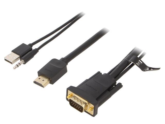 Cable HDMI 1.4 prise male D-Sub 15pin male Jack 3.5mm prise male USB A prise male 1m - Noir