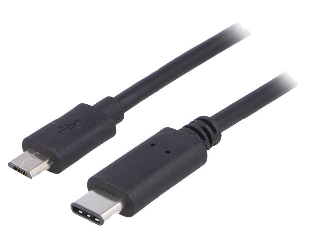 Cable- USB 2.0- USB B micro prise.USB C prise- nickele- 1m- noir