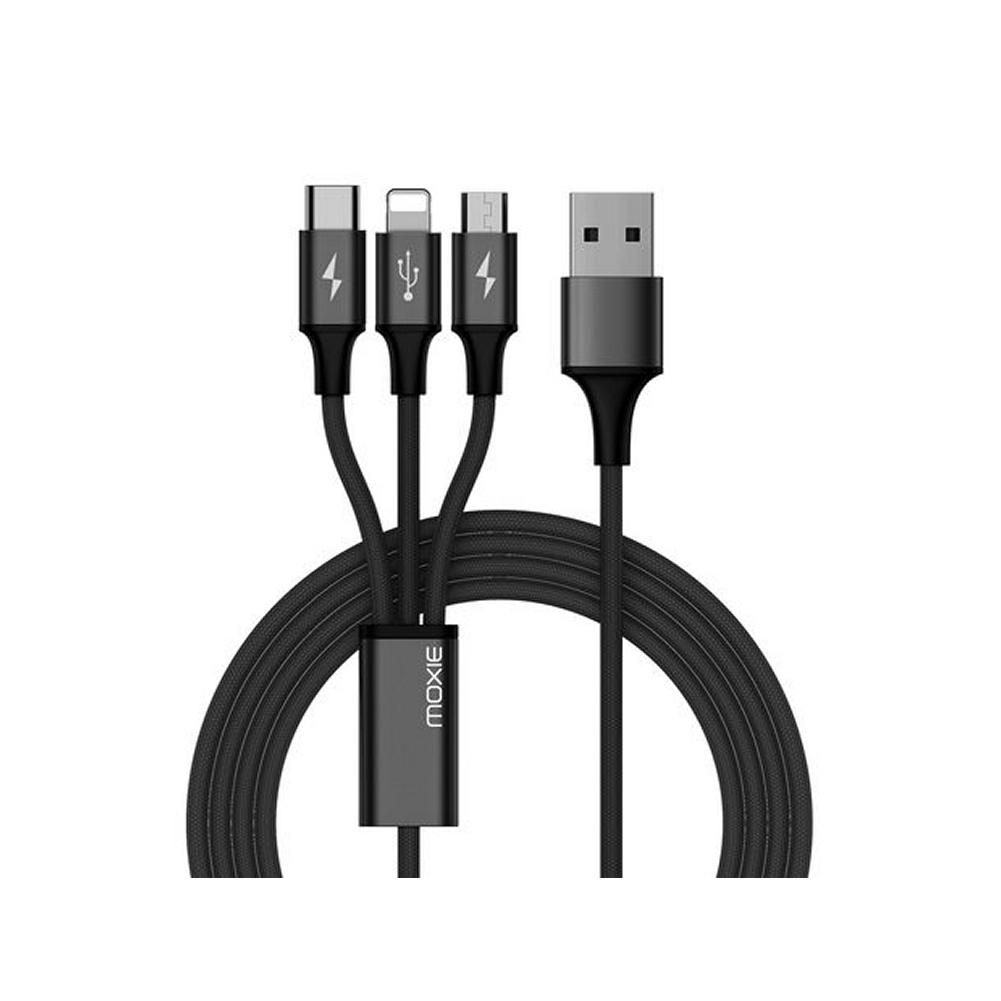 Cable USB vers 3 connectiques Micro Usb Type C Lightning - Moxie