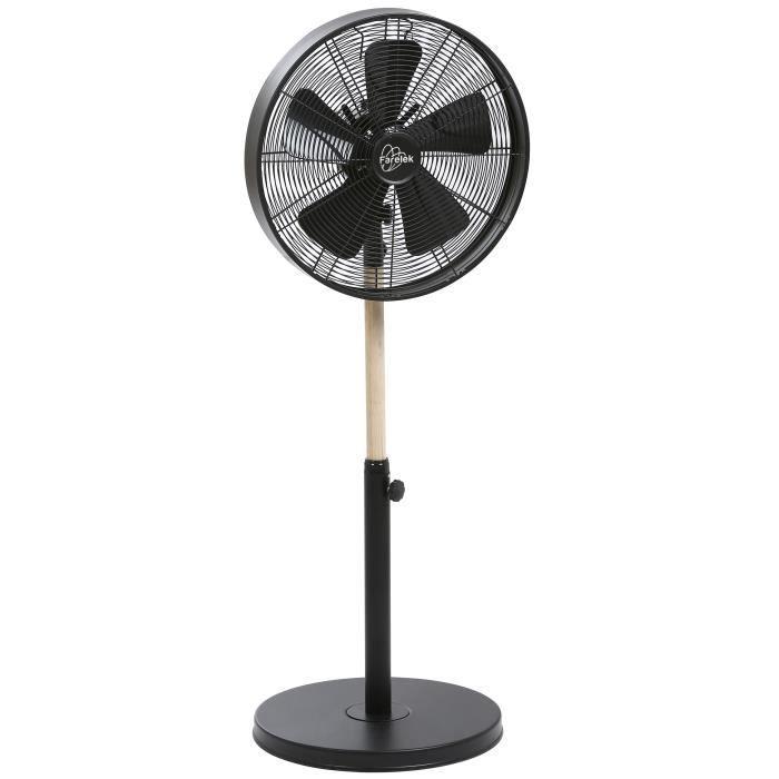 CALIFORNIA Noir et Bois - Ventilateur sur pied O40cm 50W oscillant