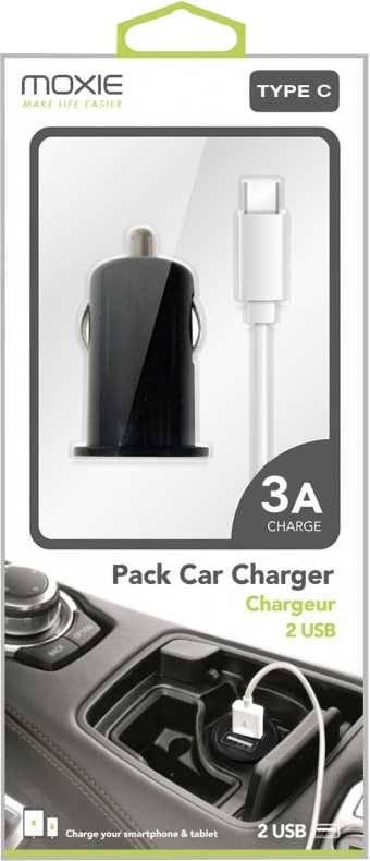 Chargeur double USB allume-cigare 3A avec cable type C - Moxie