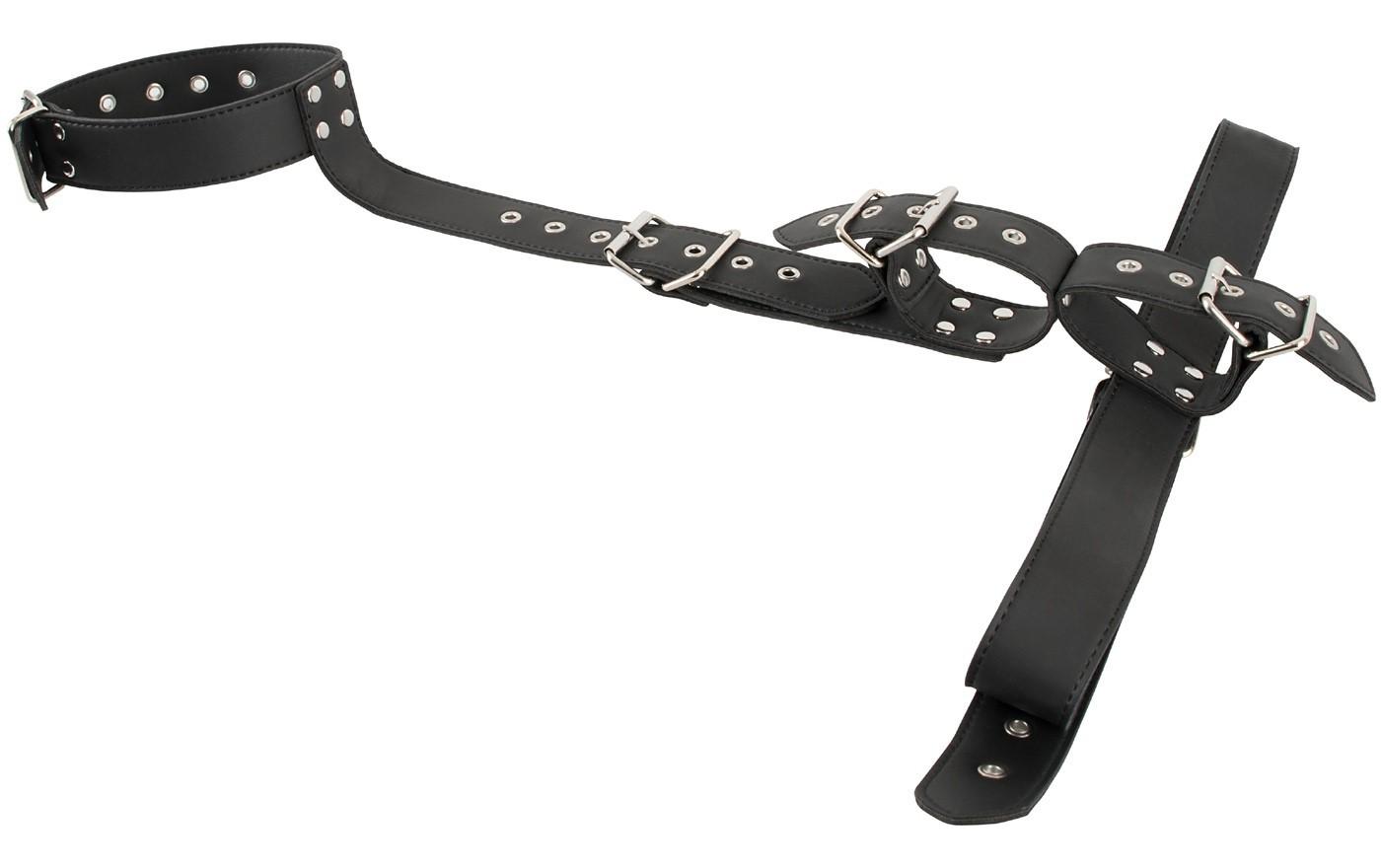 Ensemble de retenue de haute qualité avec un collier, des menottes et une sangle de taille. Tout peut être ajusté avec les boucles métalliques.