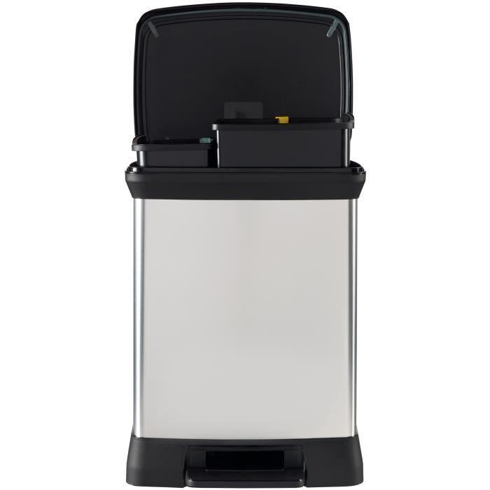 CURVER Poubelle a pédale Duo Déco - Facile a entretenir - Fermeture anti-bruit et anti-odeur - Pédale confortable - Support de sac - Résistant / ne rouille pas - Garantie 5 ans - Capacité : 10+18 L - Dimensions : 39x29x50,5 cm.