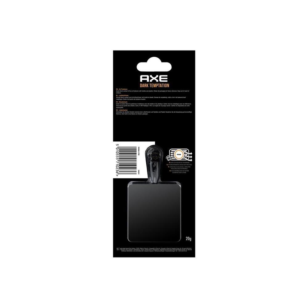 Rafraîchissez la voiture avec le célèbre parfum authentique Dark Temptation d'Axe. Le désodorisant Axe Mini Vent diffuse de délicieuses senteurs de bergamote, de romarin et de bois de cèdre. Le désodorisant est fixé à la grille de ventilation à l'aide de l'agrafe de fixation sur le désodorisant et fonctionne jusqu'à 30 jours.