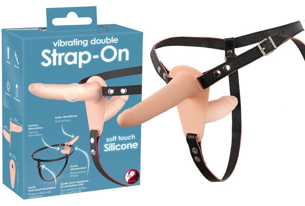 Ce double gode ceinture est vibrant. Le petit gode est inséré et le harnais est ajusté à la taille désirée. Le long gode lui est vibrant pour plus de plaisir.