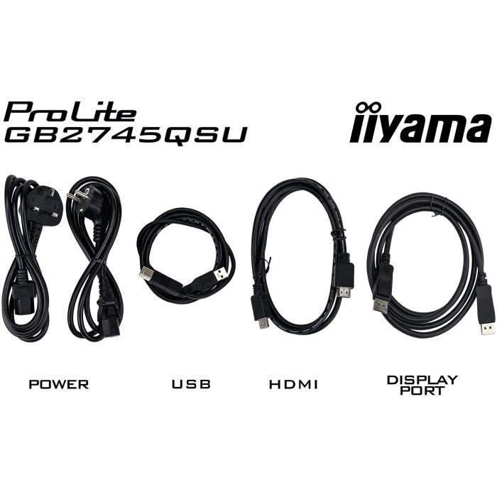 Ecran PC - IIYAMA - GB2745QSU-B2 - 27 QHD - IPS - 100Hz - 1ms - HDMI-DP-USB HUB - Pied reglable + Pivot - Haut-parleurs - Noir