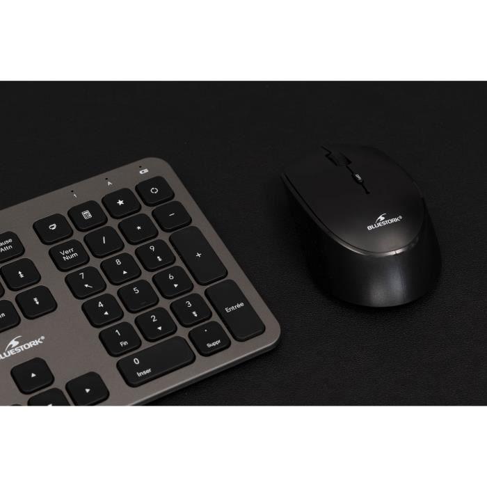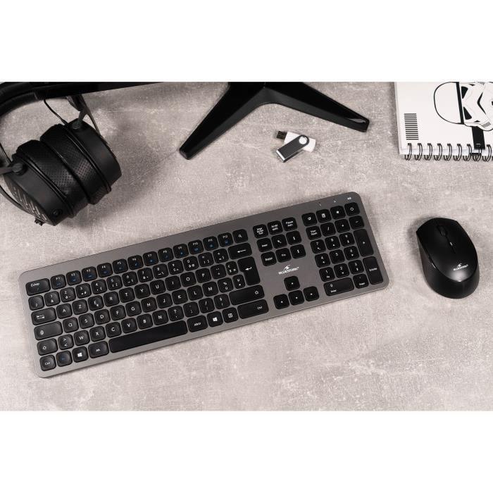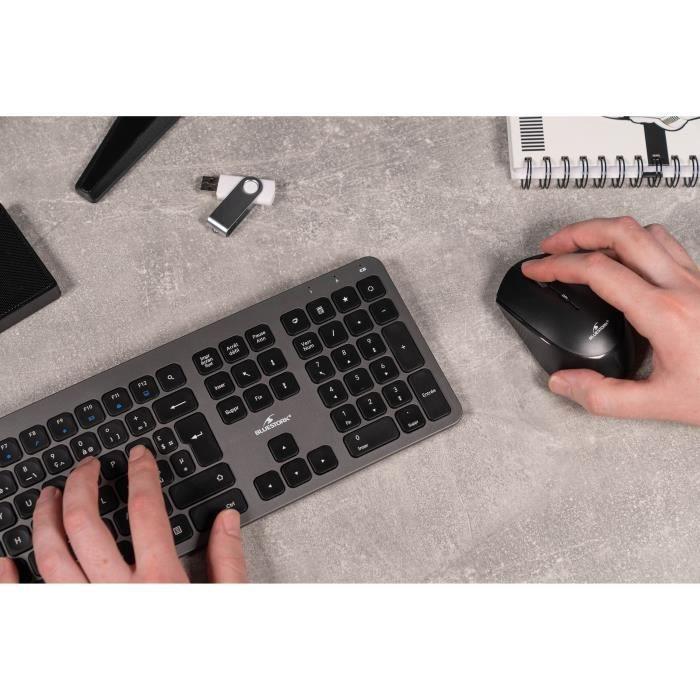 Ensemble clavier et souris - BLUESTORK - Pack Easy Slim - Sans fil - Gris métal