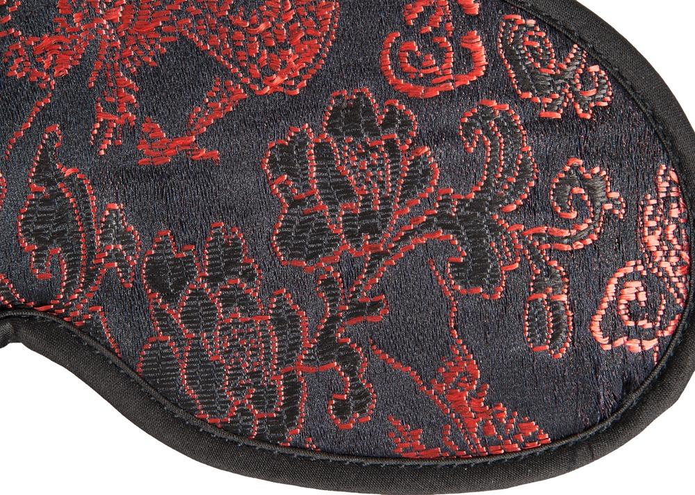 Ensemble menottes bandeau fouet 38cm satin noir et rouge