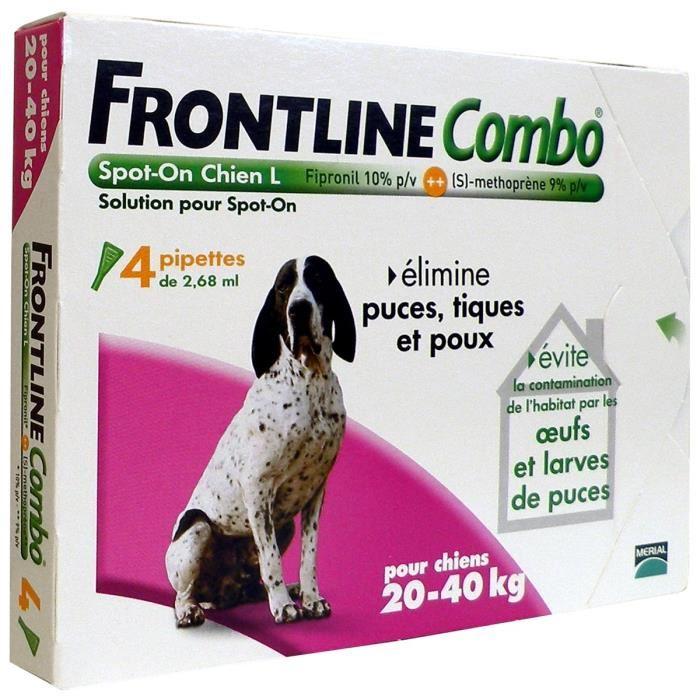 FRONTLINE Combo Chien L - 20 a 40 kg - 4 Pipettes - Puces tiques et poux