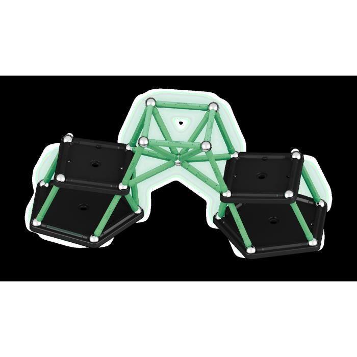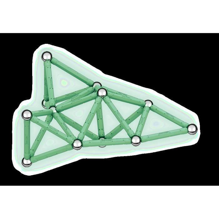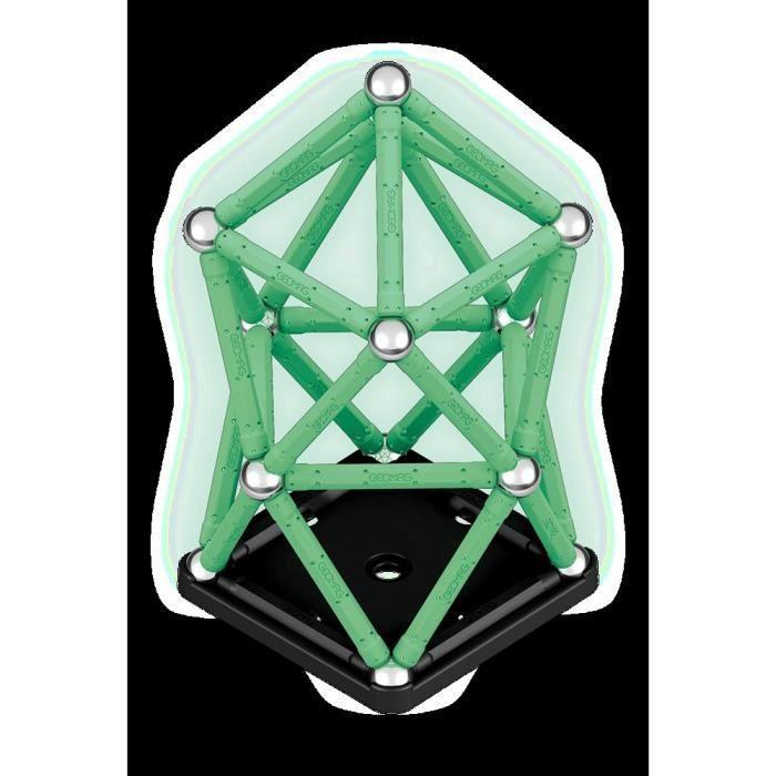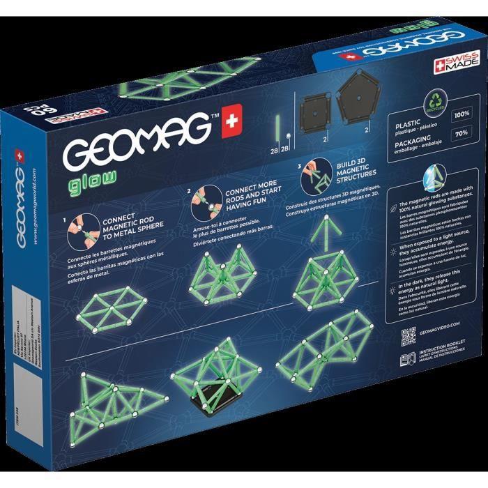 Avec ce coffret, tu pourras realiser des constructions en 2D ou 3D avec des efftes GLOW (brille dans le noir). Inclut 28 barres Geomag, 28 Spheres et 4 bases. Geomag EcoFriendly est composé de plastique a base de 100% de polymeres revalorisés et avec des