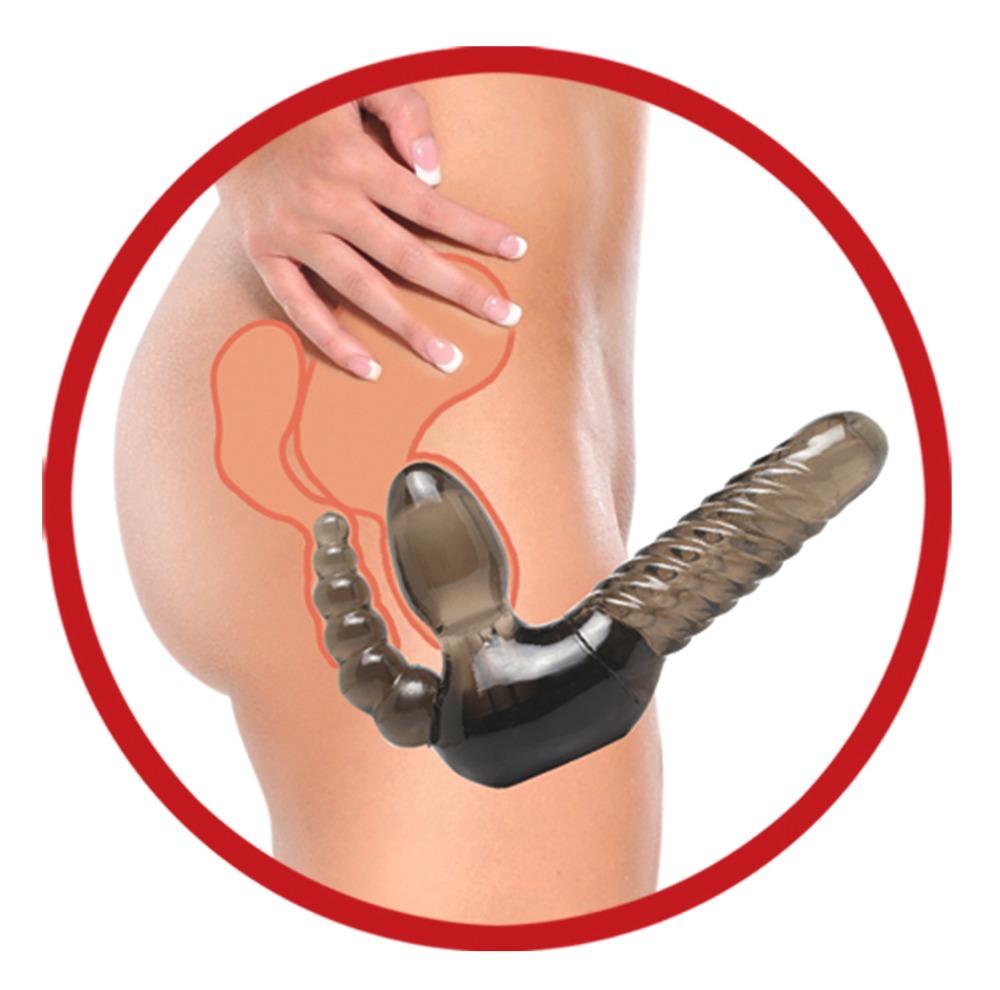 Jouet ingénieux pour les jeux de rôle dans lesquels la partie active est stimulée tout autant que la partie passive. ELLE se présente à la prise vaginale et anale et peut ensuite profiter du gode.
