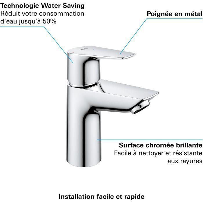 Mitigeur lavabo salle de bains - GROHE - Monotrou - Chrome - Economie d'eau