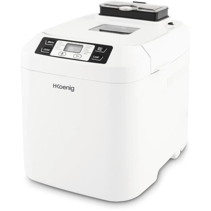 Machine a pain HKoeNIG - BAKE340 - 12 programmes - 3 niveaux de cuisson - Jusqu'a 800g de pain - 550W - Blanc