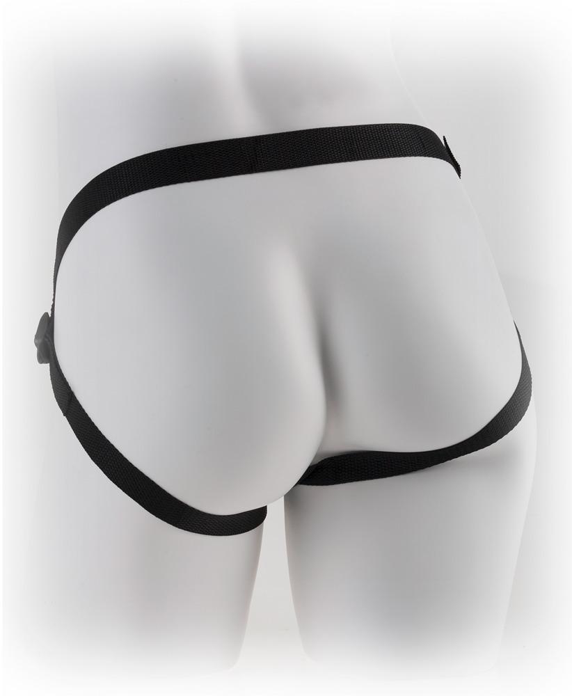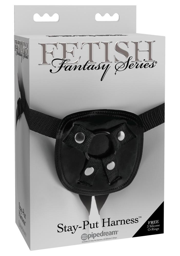 Harnais noir laque pour gode avec pied a aspiration ou pied de support