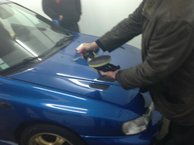 Après avoir lavé la sub avec un shampoing pour voiture nous avons directement appliqué ce polish de finition en le spayant sur la peinture et en nous aidant d'une lustreuse orbitale Meguiars.