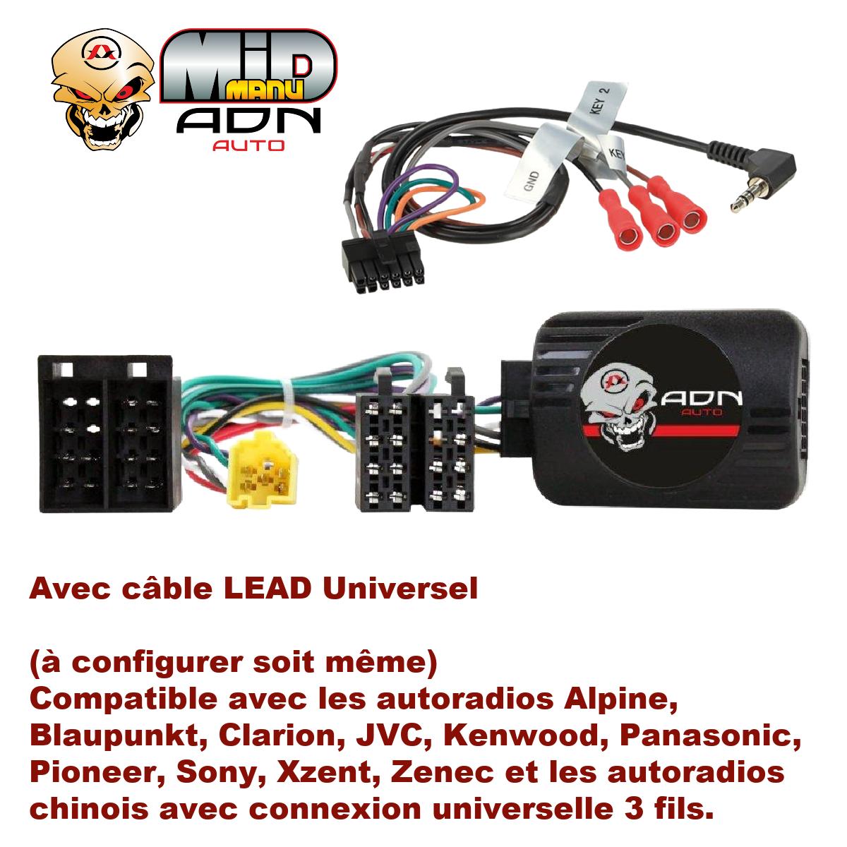 L'interface de commande au volant peut être la RN3 ou la RN4 selon le nom, le modèle de l'autoradio d'origine.