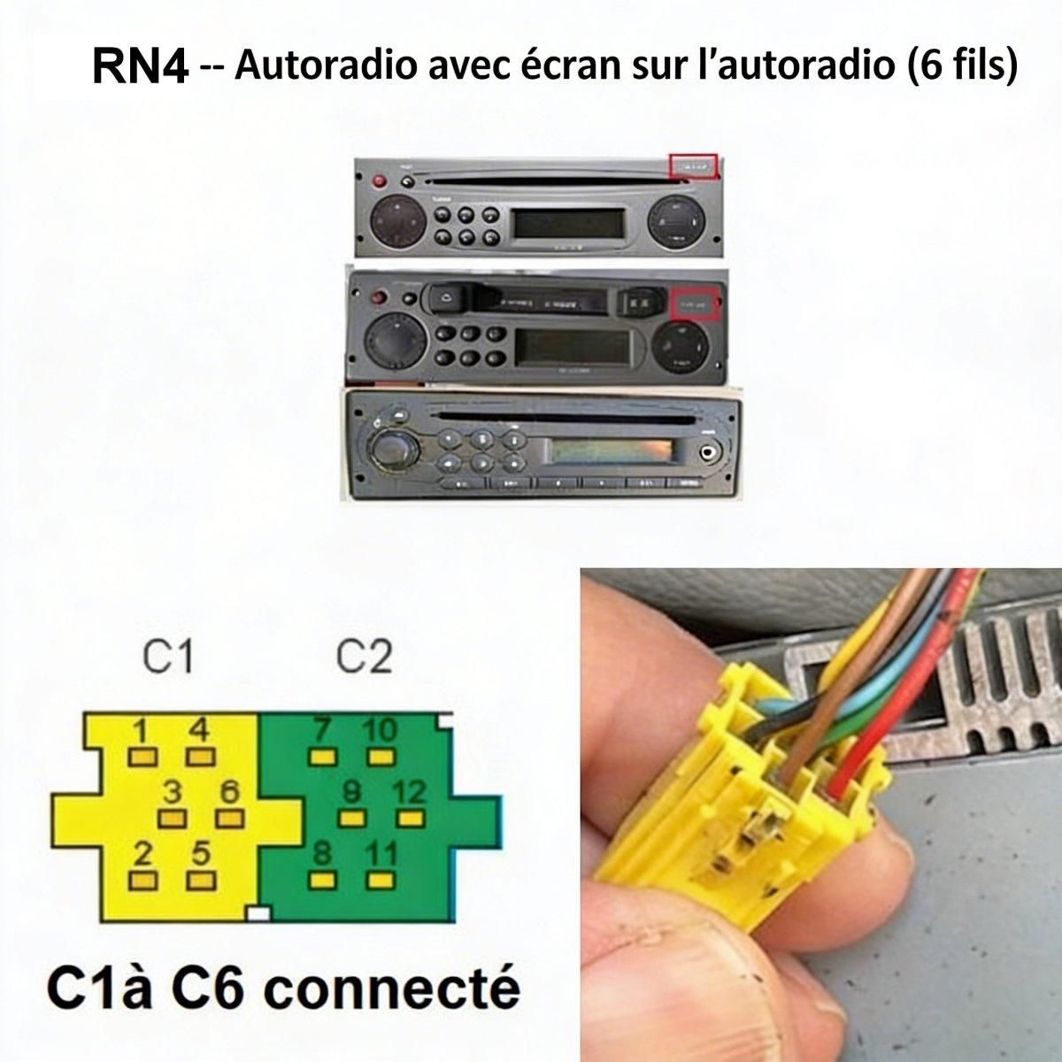 Si les six fils sont branchés, c'est bien la RN4. Par contre sur les Twingo, il y a un problème d'écran déporté. Aviez-vous bien un écran déporté sur la voiture qui affiche les informations de l'auto radio d'origine sur le tableau de bord?