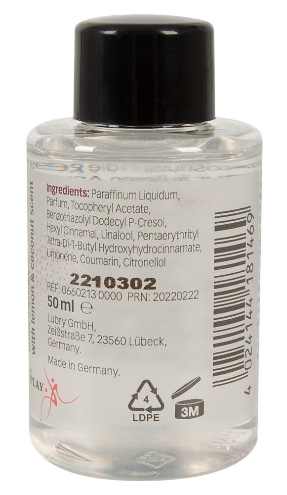 L'huile de massage érotique Just Play au parfum excitant et exotique de citron et de noix de coco ravit tous les sens et éveille les passions érotiques lors d'un massage en couple.