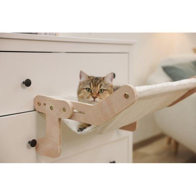 Ce hamac pour chats en bois massif offre une surface de couchage moelleuse et réversible. Facile a fixer sur les lits, commodes, armoires ou tiroirs, il dispose d'un pied d'appui verrouillable pour une adaptation individuelle et s'accroche sans perçage, offrant un confort optimal a votre chat. Couleur principale: Beige. Taille de l'animal: Petit. Famille d'animal: Chat.