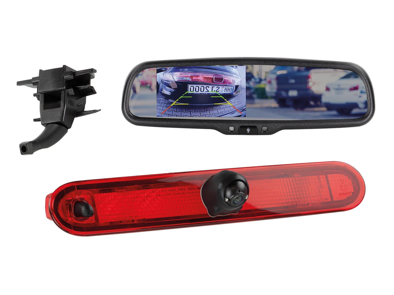 Retroviseur pour remplacer le retroviseur d'origine : moniteur de 4,3" design OEM / 2 entrées vidéo / moniteur extrêmement haute luminosité
