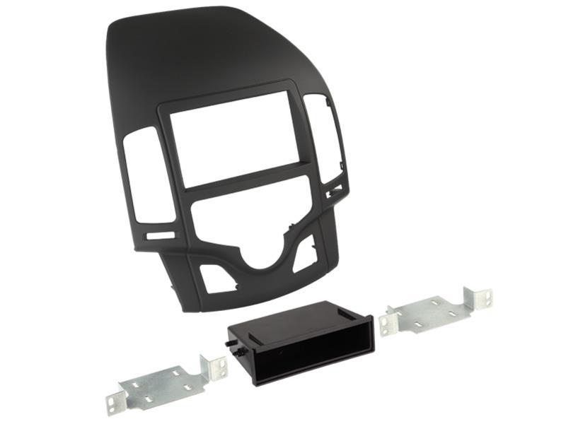 Kit Facade autoradio 2DIN compatible avec Hyundai i30 07-12 vide poche Noir Rubber touch Clim auto