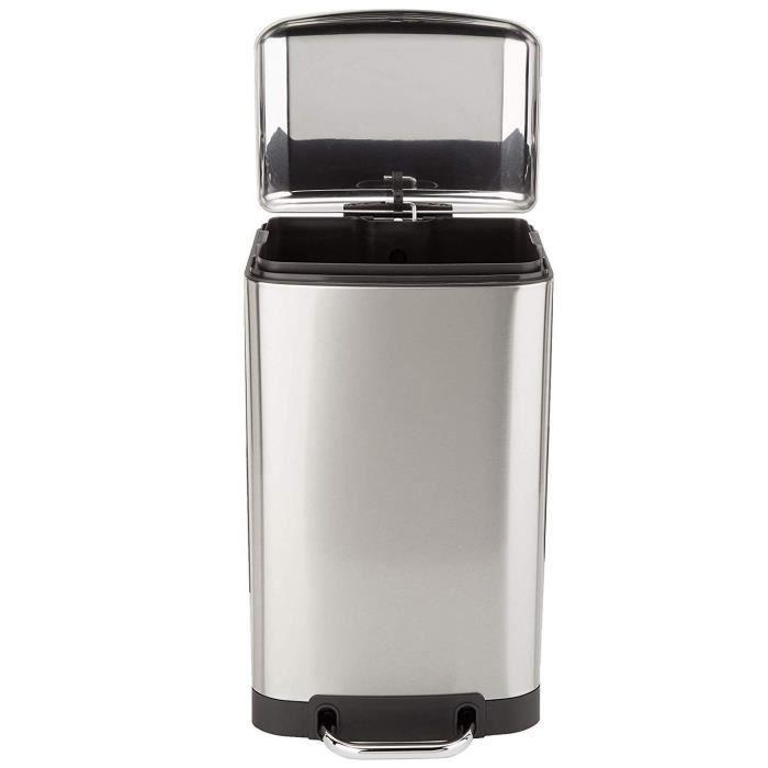 Poubelle de cuisine a pédale rectangulaire avec seau Capacité 30L modele GREENWICH en acier Inoxydable - Finition Inox brossé - Dimension: 35x33xH62cm - Poids 3.8kg - Corps et couvercle en acier INOX (0.4mm) - Inclus: Un seau pour maintenir votre sac poubelle