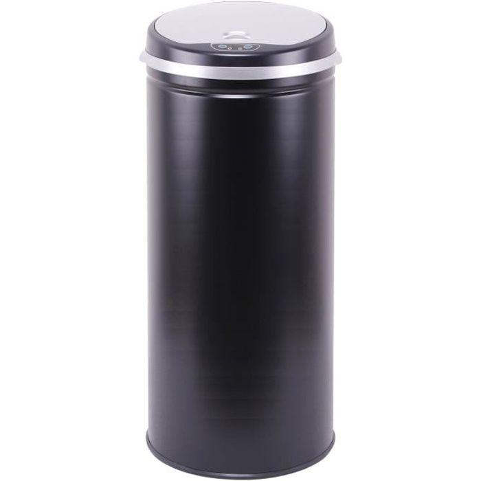 Poubelle de cuisine SENSOR AUTOMATIQUE BLACK 42 Litres INOX - Dispose d'un capteur sensoriel - Cerclage inclus - Dimensions : Ø 31cm x H 74 cm - Nouveau couvercle plus fin et plus large -Sceau non fourni