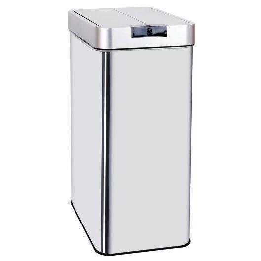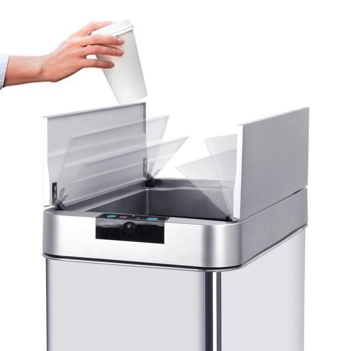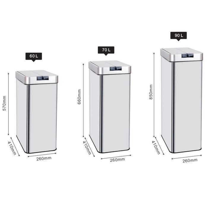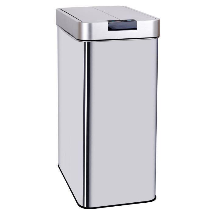 Poubelle de cuisine automatique rectangulaire avec cerclage Capacité 60L modele SILVERLAKE en acier Inoxydable - Finition Inox brossé - Dimension: 41x26xH57cm - Poids 4kg - Poubelle avec couvercle a ouverture automatique mains libres et look moderne et élégant - Corps en INOX (0.4mm) et couvercle en ABS