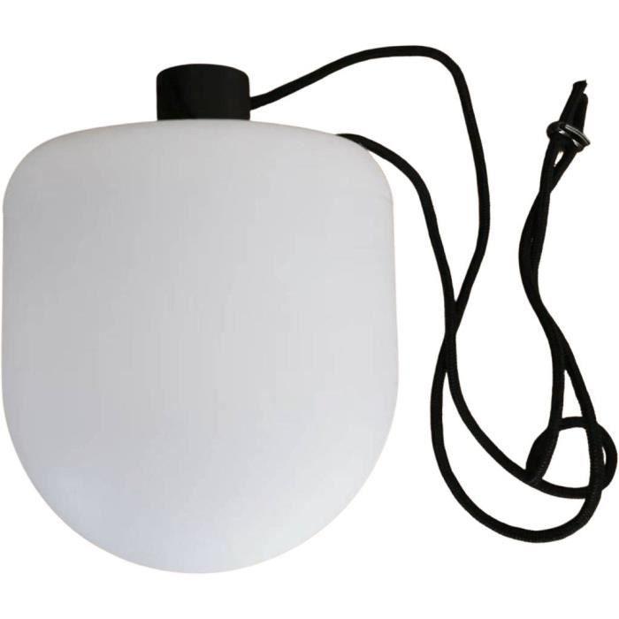 Lampe a suspendre tres éclairante rechargeable par USB Matiere : résine type PE 200 Lumens maxi Durée d'éclairage : 4h (200 lm) / 8h (100 lm) / 15h (50 lm) Micro Pin5 charging port 1 câble USB fourni Interrupteur multifonction : On 100% / 50% / 25% / Off 6 x 0,5W LED lumiere blanche chaud 1 x 2200mAh 3,7V Li-on 18650