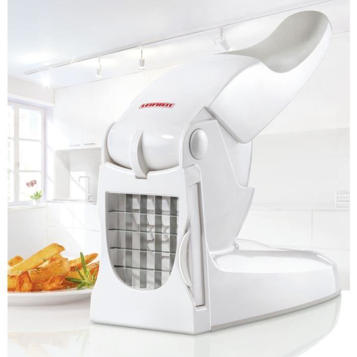 Coupe-Frites Leifheit 3206. coupe legumes antiderapant pour faire des batonnets de 10mm ou 12 mm. poignee ergonomique. blanc