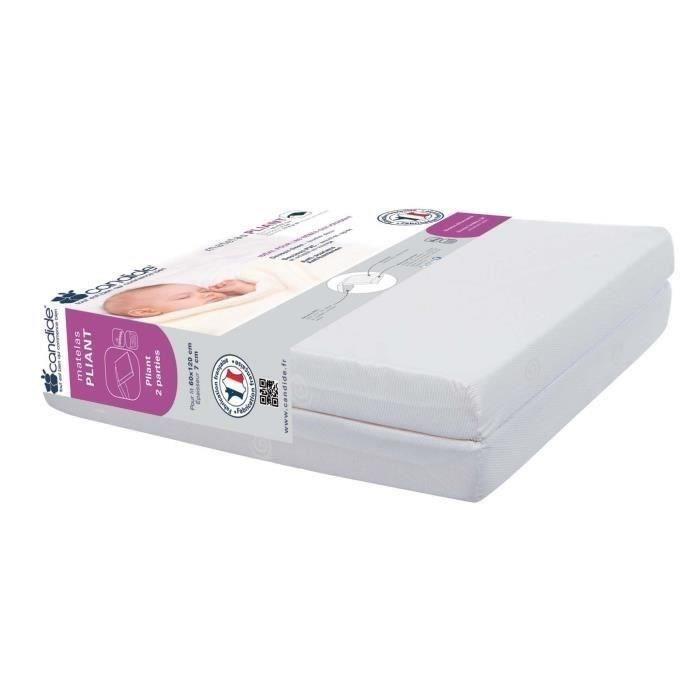 Matelas Bébé Pliant 2 Parties 60x120x7cm Essentiel Fabriqué En France - Garantie 5 ans