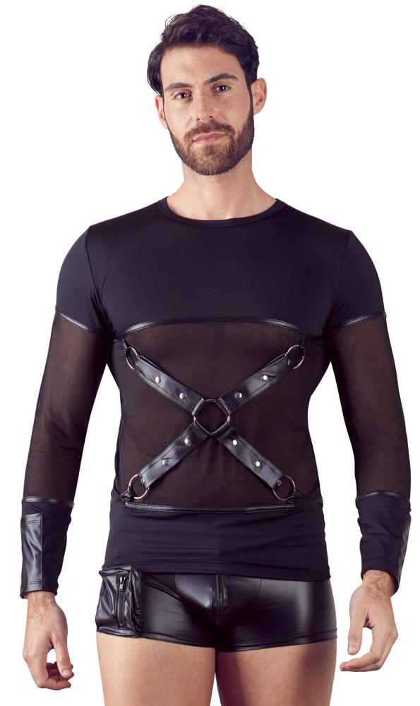 Chemise au look mat avec des manches longues et un insert tulle élégant sur le devant pour mettre en valeur les muscles d'un homme.