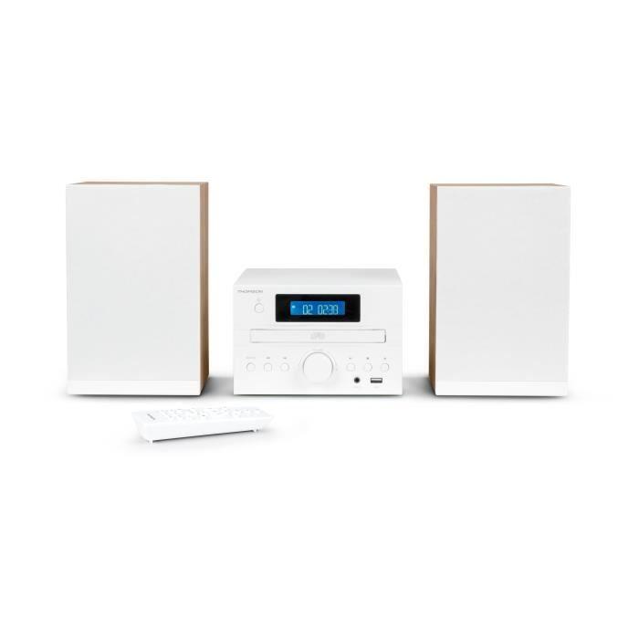 Microchaine - THOMSON - COSY MIC121BT - Lecteur CD. Bluetooth. Radio FM. MP3. USB - Bois et Blanc
