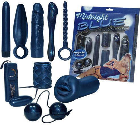 Midnight Blue - Coffret Avec Strille Anal Oeuf Vibrant Boule Geisha Anus Picket Vibromasseur Cockring Gode Et Gaine