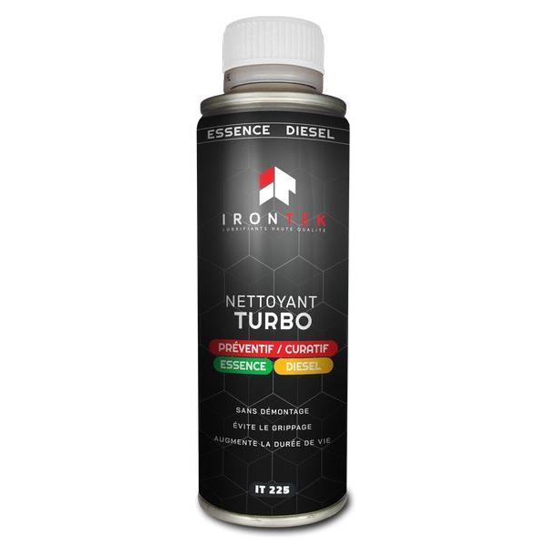 Le nettoyant Turbo Irontek décalamine et dépollue plus particulièrement le Turbo. Il nettoie les parties mobiles et réduit l’encrassement. Permet l’amélioration des performances. Peut être utilisé en préventif ou en curatif. Il prolonge la durée de vie du Turbo.