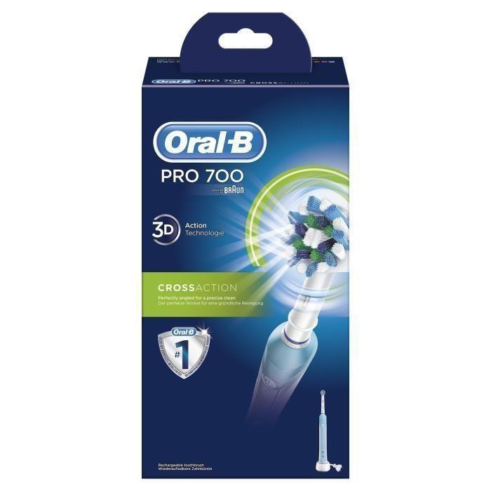 Brosse a Dents Electrique Oral-B PRO 1 700 Cross Action - Rechargeable - Minuteur - Blanche et bleue