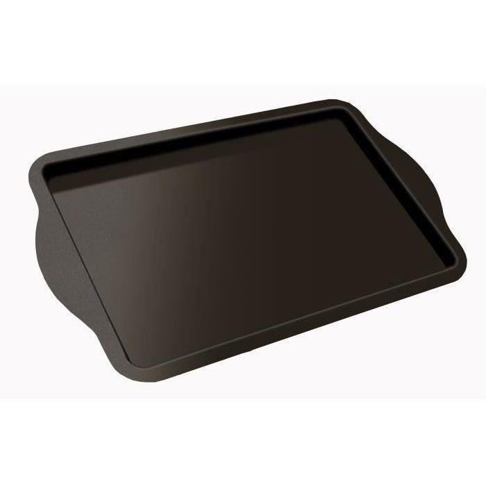 Plaque rectangulaire 43x28x2,5 cm SUCRE & GOURMANDISES - acier revetu Carbon steel 0,8 mm - intérieur et extérieur revetement anti adhérent coloris anthracite