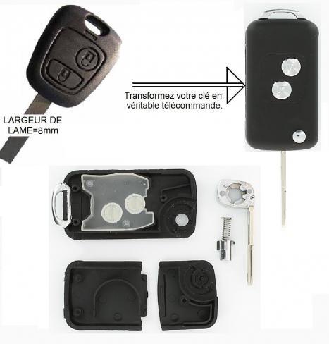 PSA210 - Coque de cle compatible avec Peugeot type C-PSA21 avec lame fraisee de 8mm retractable
